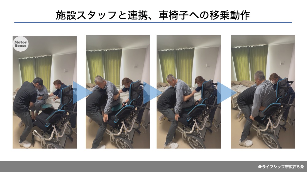 施設スタッフと連携、車椅子への移乗動作